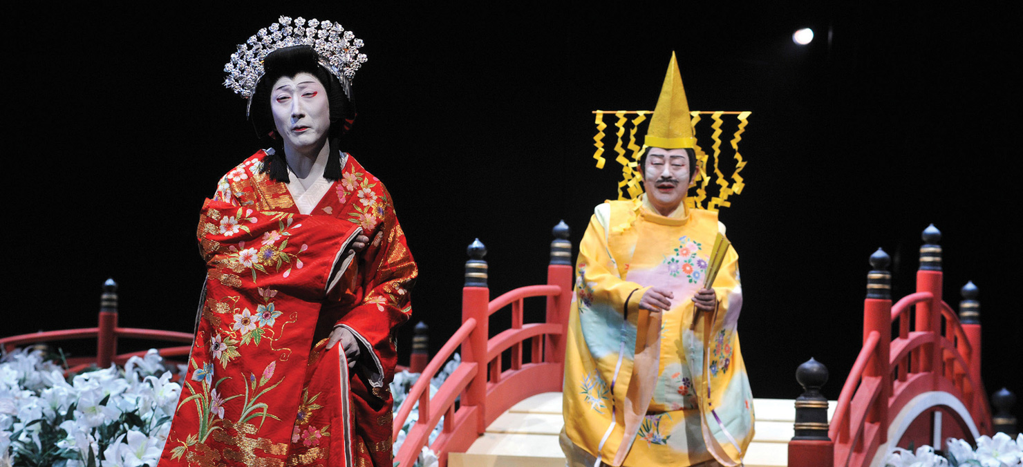 Drama: In the 1300s (14th century), well after the Heian period, a new kind of drama developed called Noh. This type of drama appealed to the nobles and samurai. It is serious and intense. A Noh play takes place on a simple, almost bare stage. The players wear colorful costumes and masks.
