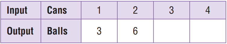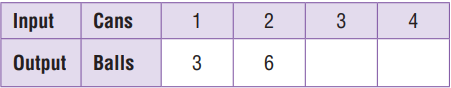 When cans = 3, balls = _______. When cans = 4, balls = _______.