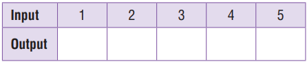 When input = 1, output = _______. When input = 2, output = _______. When input = 3, output = _______. When input = 4, output = _______. When input = 5, output = _______.
