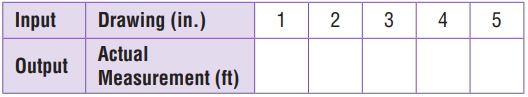 An architect makes a drawing of a building. One inch in the drawing equals 10 feet in actual measurement. Use the table and the coordinate grid to show the pattern.