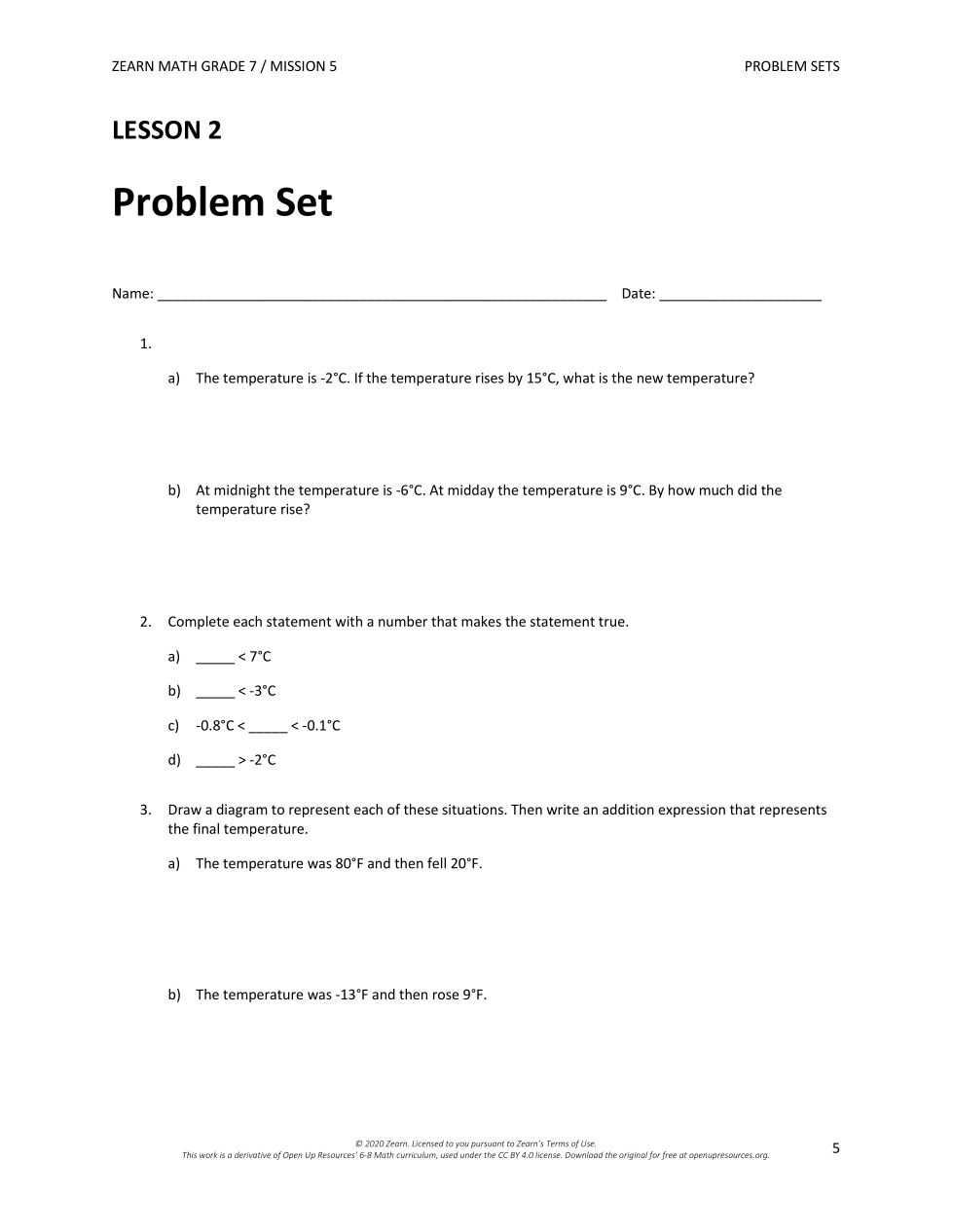 2. Complete each statement with a number that makes the statement true. b) _____< -3 degrees C