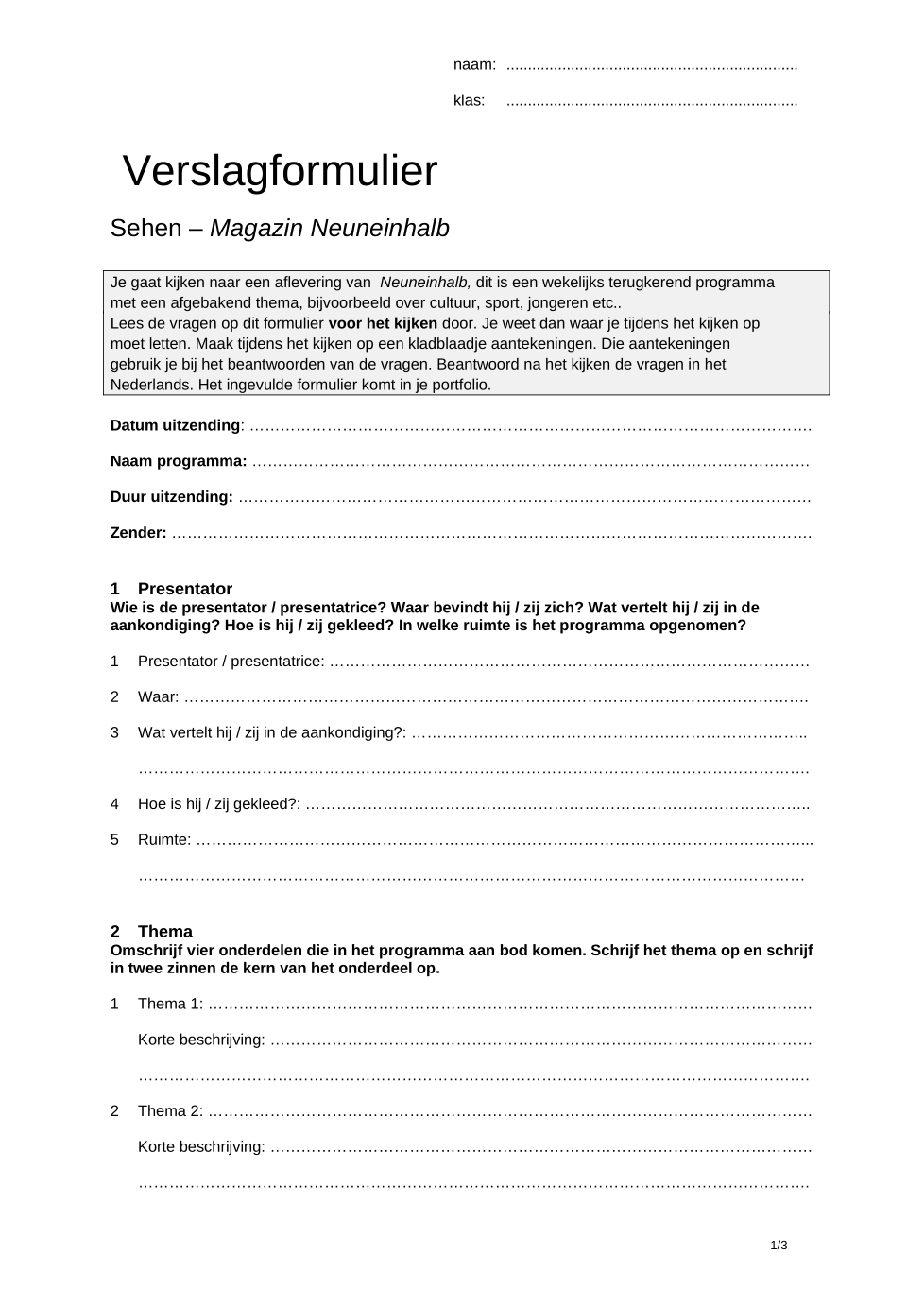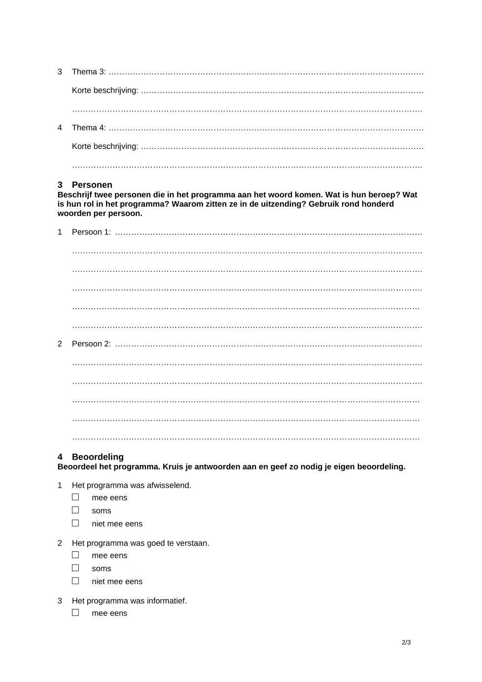 Welke aflevering heb je uitgekozen? Schrijf hier het datum en het thema van de uitzending op.