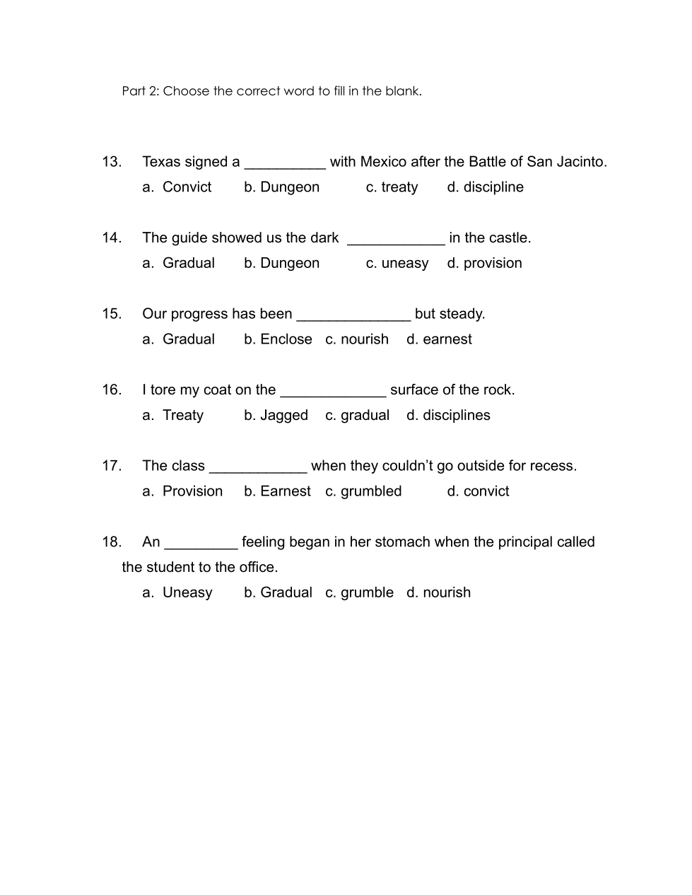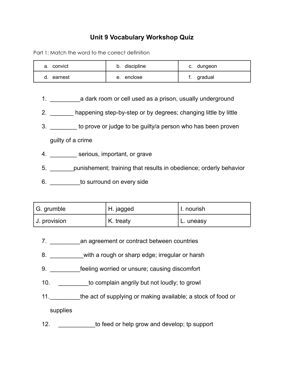 Vocabulary Workshop Grade 4 Unit 9 Quiz