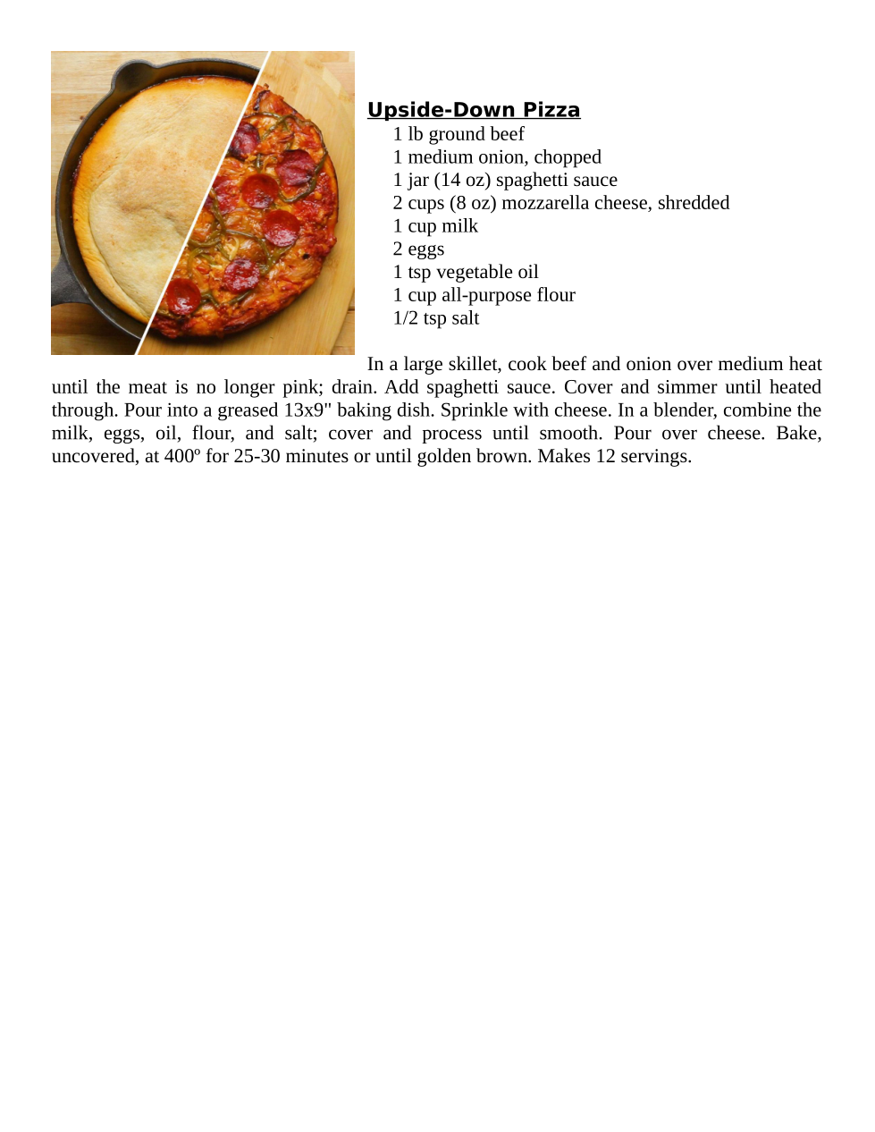 Which ingredient is not on the list to make Upside-Down Pizza?