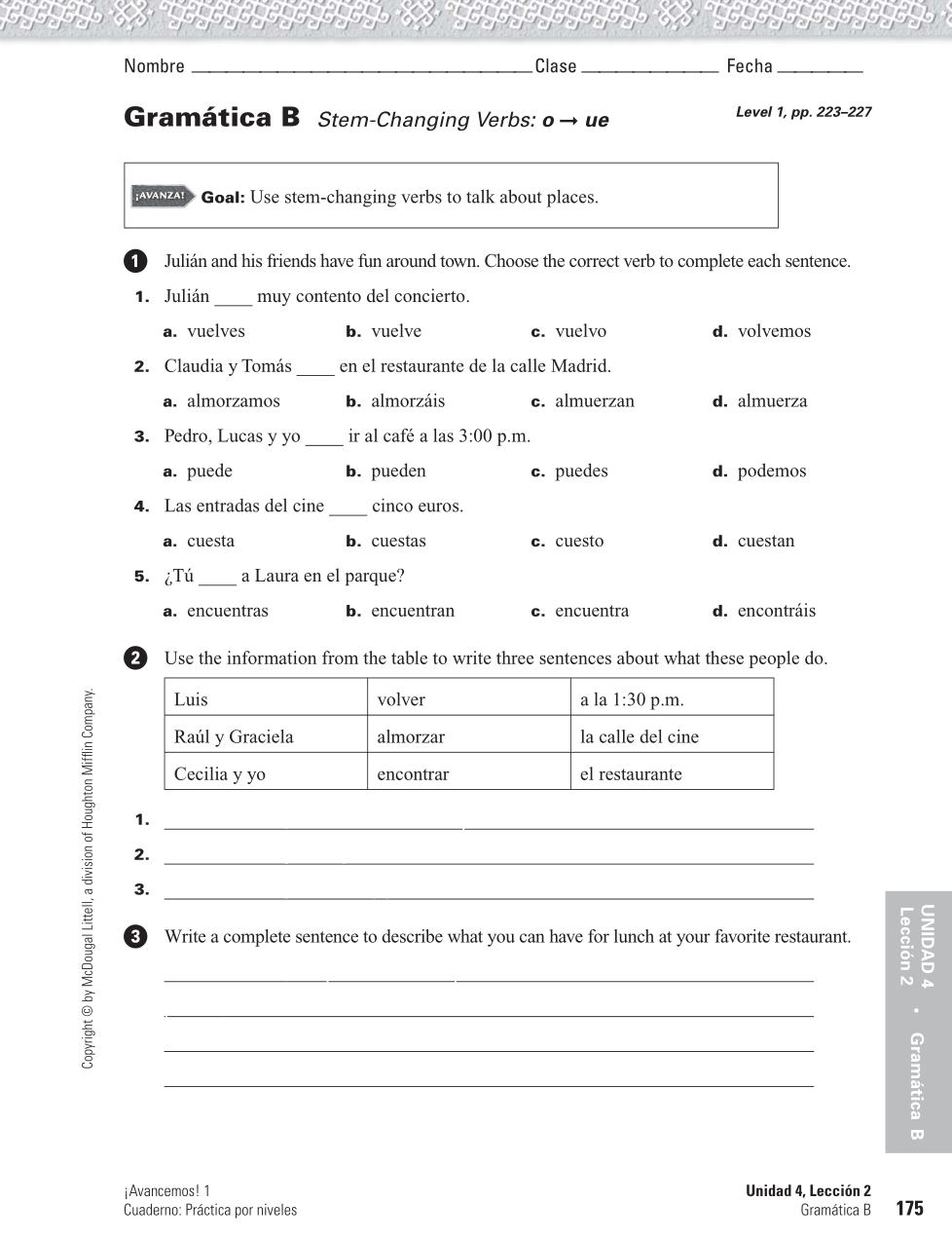 Gram. B Stem Changing O to UE Numbers 6, 7 & 8 will be hand graded.