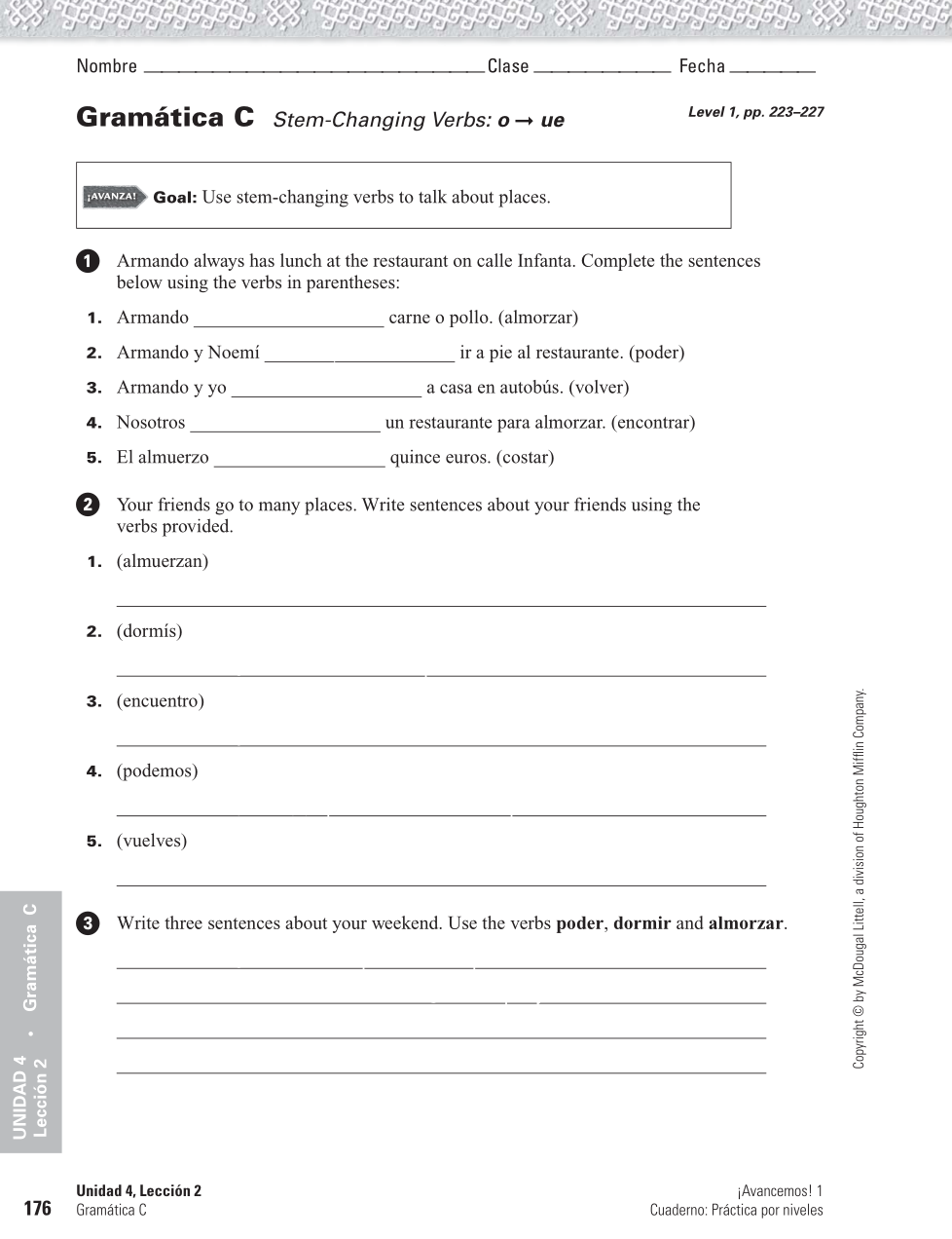 Gram. C Stem Changing O to UE Numbers 6 to 11 will be hand graded.