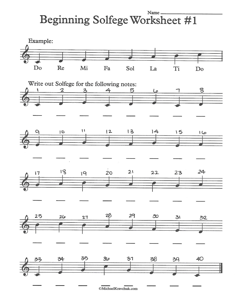 Write the first letter of the solfege syllable for each question.