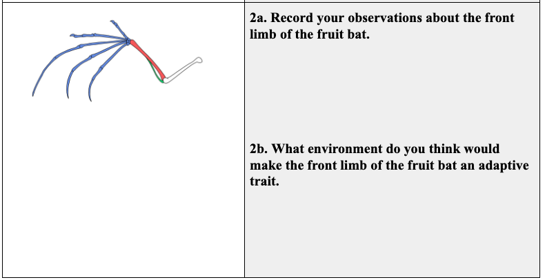 What environment do you think would make the front limb of the fruit bat an adaptive trait.
