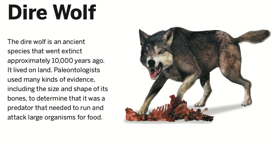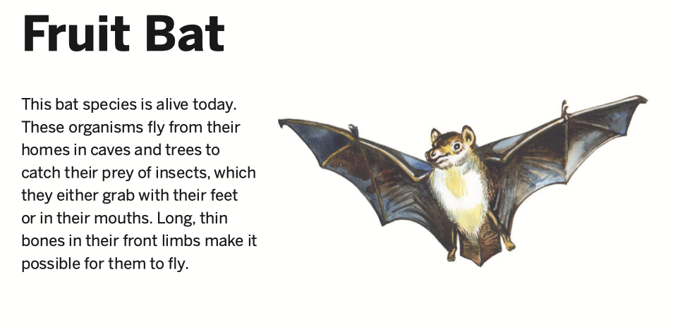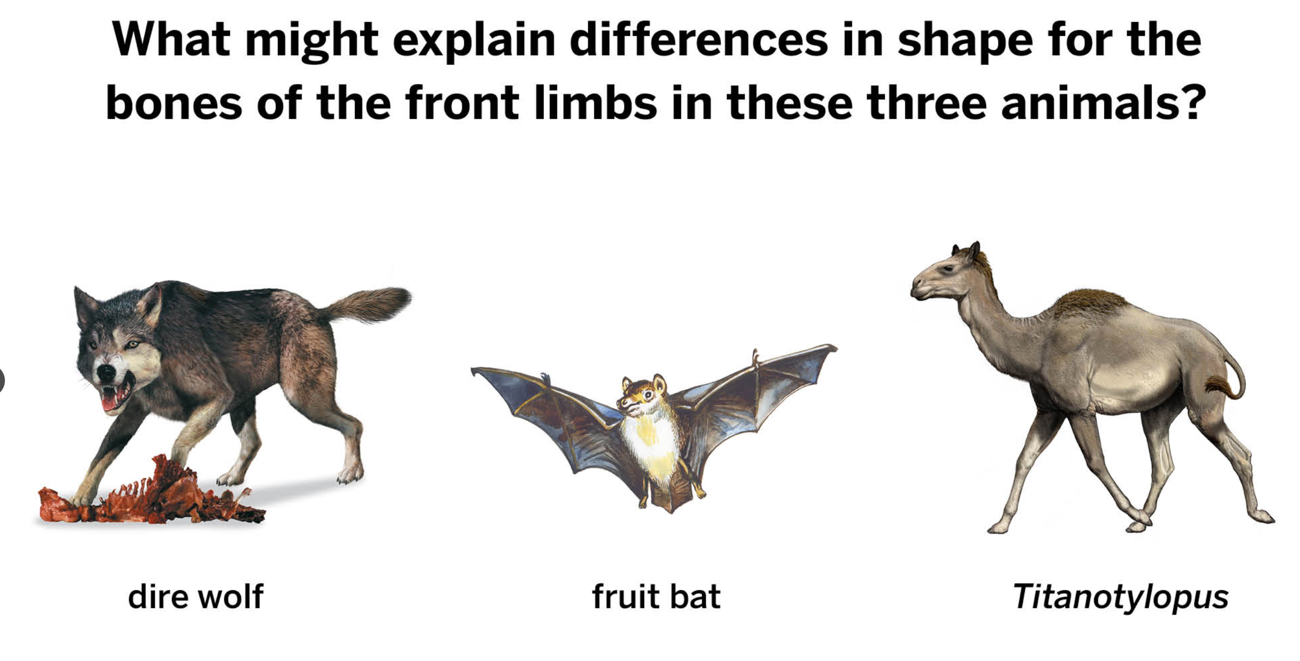 Part 1: Observing Species’ Front Limbs Record your careful observations of the zoomed-in illustrations of front limbs for the dire wolf, the fruit bat, and Titanotylopus