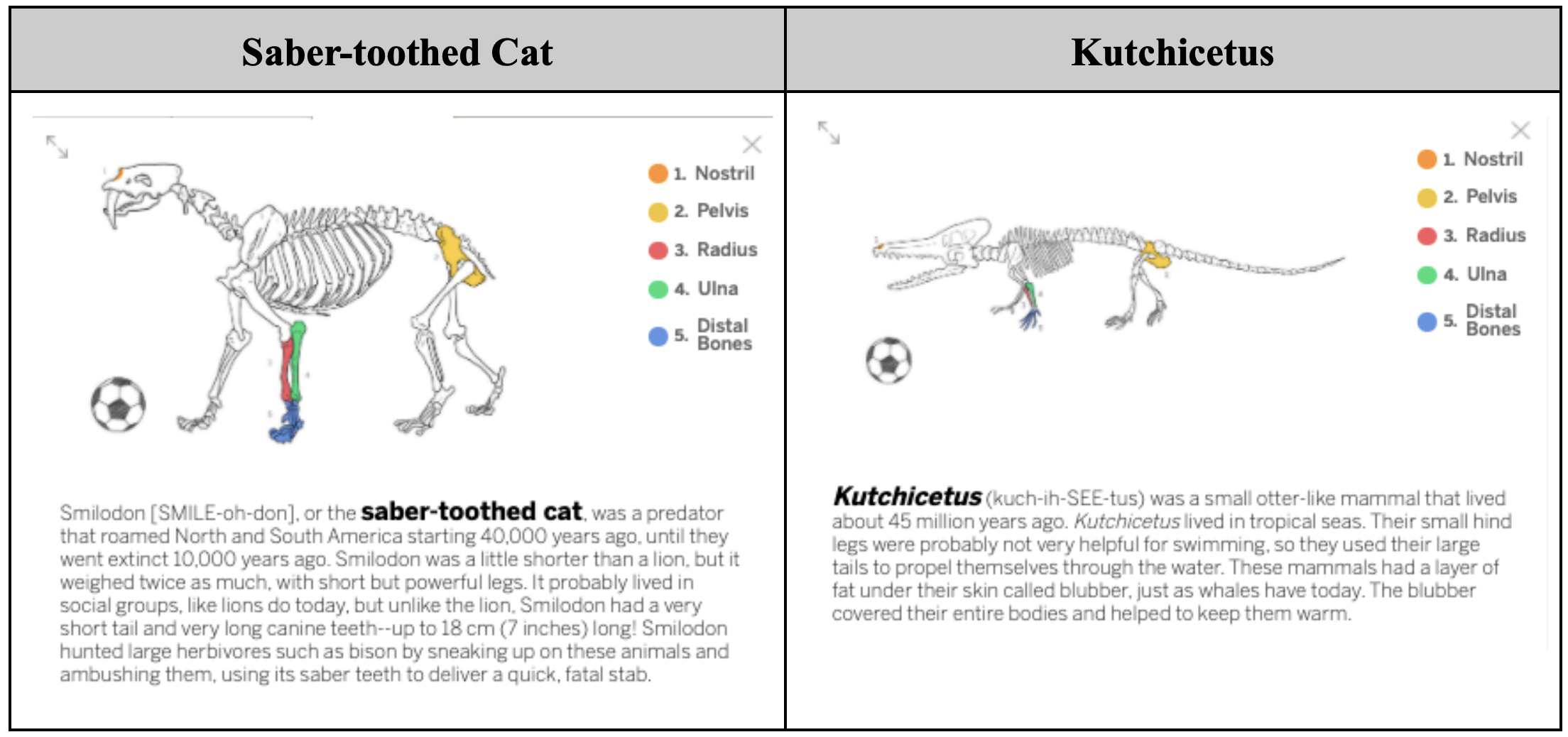 • Find Kutchicetus and Saber-Toothed Cat in the Fossils Collection and open their Study Windows.