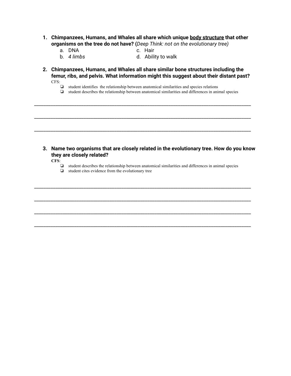 • student cites evidence from the evolutionary tree