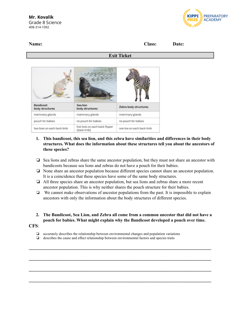 Evolutionary History 1.4 (2/16) Exit Ticket