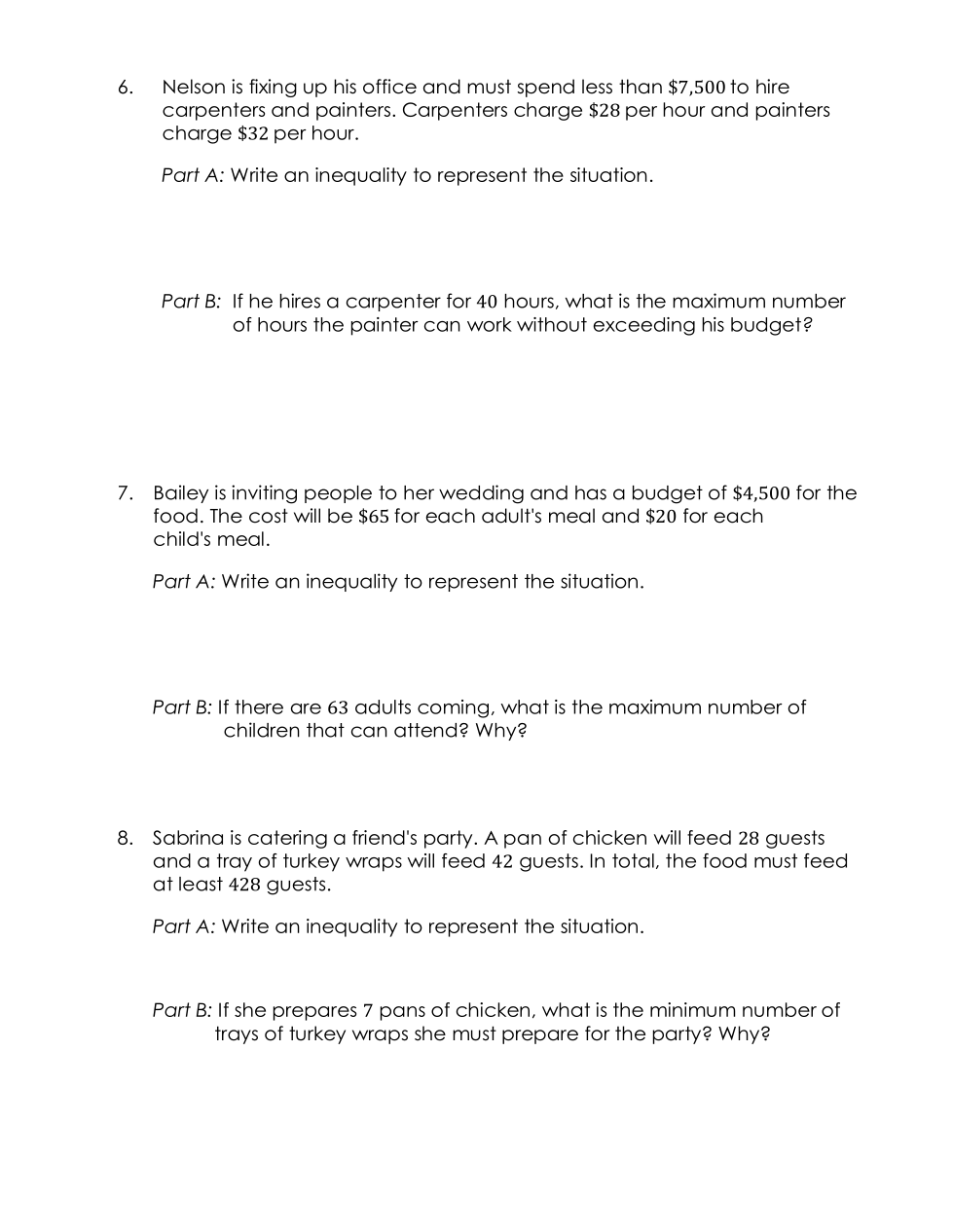 Inequality. Let a=adults Let c=children