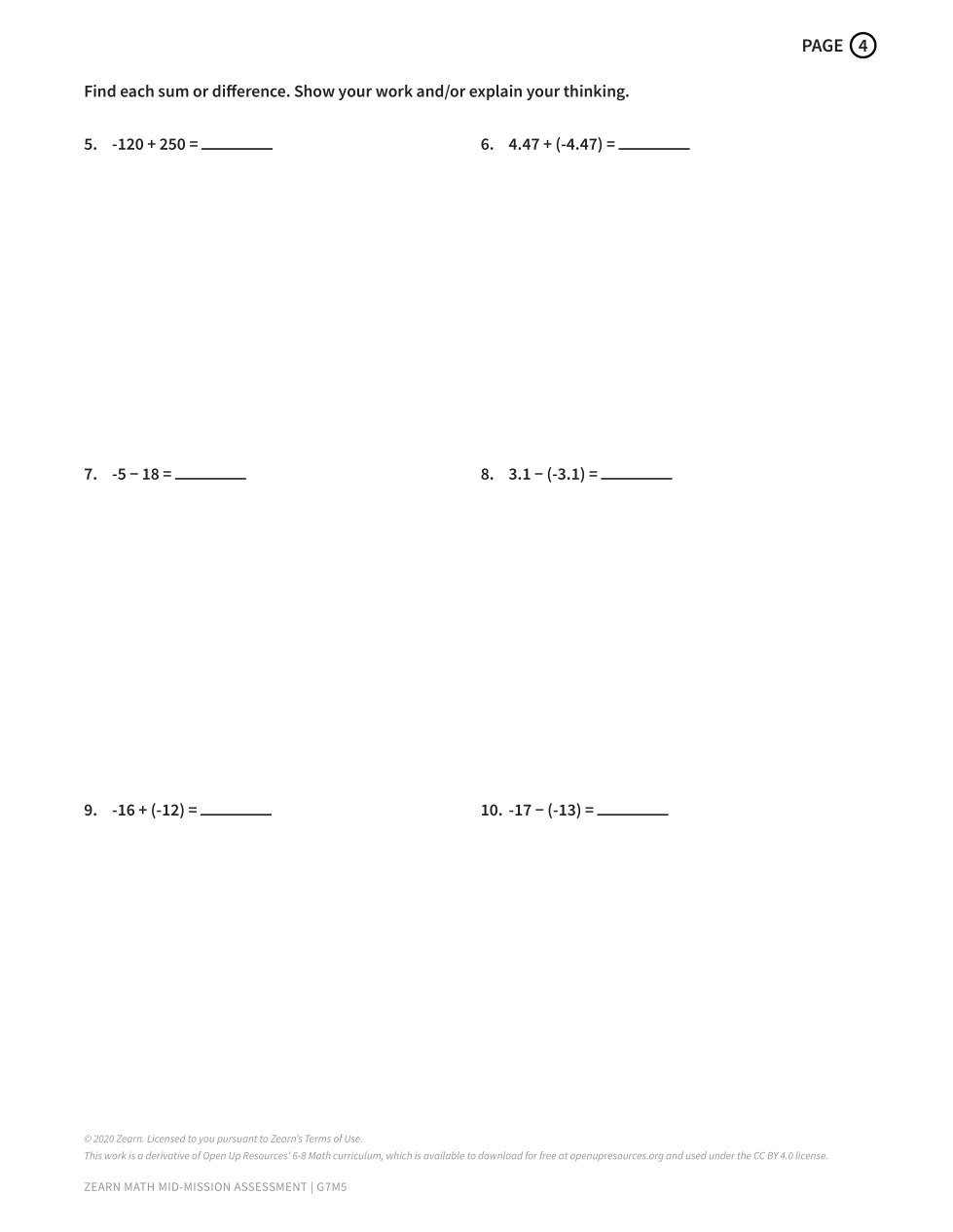 5. Find each sum or difference. Show your work and/or explain your thinking