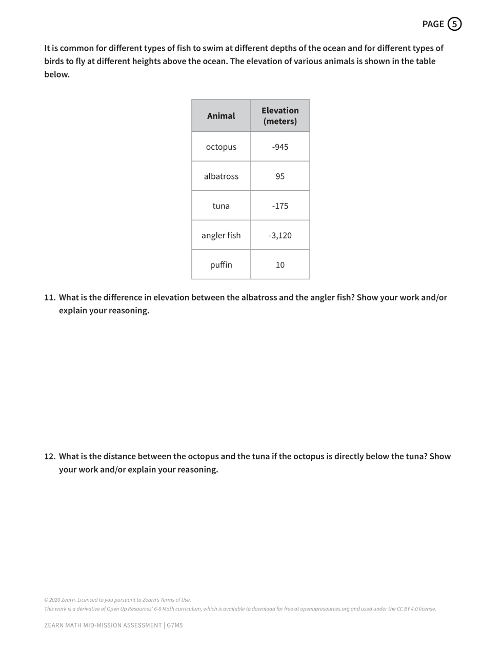 11. What is the difference in elevation between the albatross and the angler fish? 1 pt for the correct answer1 pt for showing your work