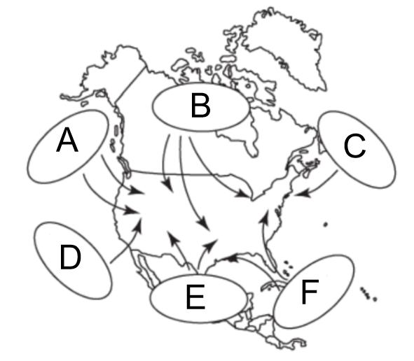 Use the map below to categorize the air masses. Place the names of the air masses with the letter it belongs with from the map.
