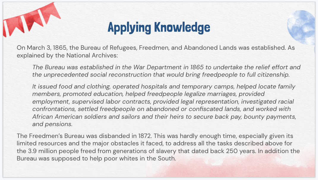 Content Objective: I will be able to identify at least 2 successes of the Reconstruction period.
