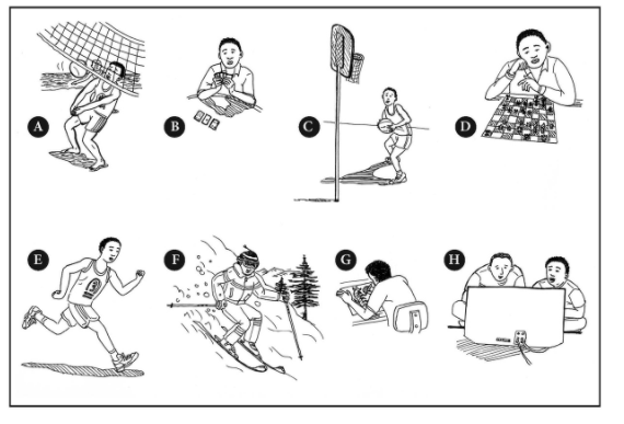 Write the sport or activity in Spanish: Use estar + -ing (iendo and -ando) jugar, hacer, ver