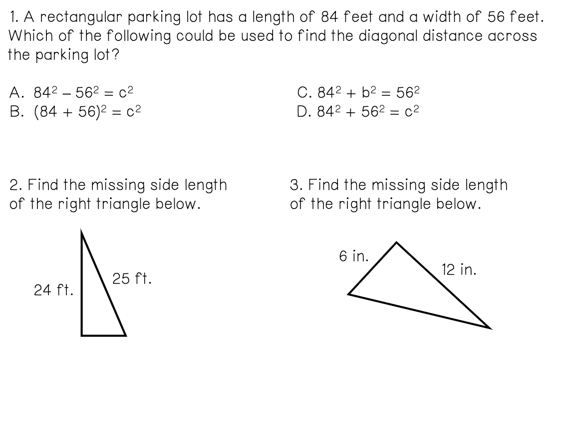 Check-in Pythagorean Theorem (Lessons 1-3)