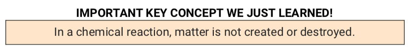What do you notice about the number of atoms of each substance (chemical) BEFORE and AFTER the chemical reaction?