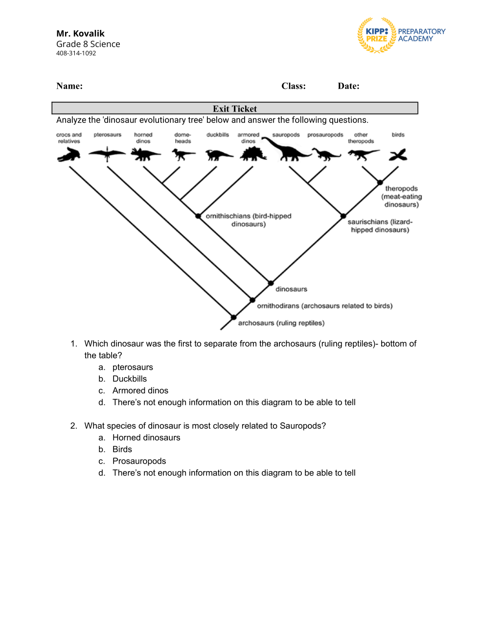 Evolutionary History 2.4 (3/3) Exit Ticket
