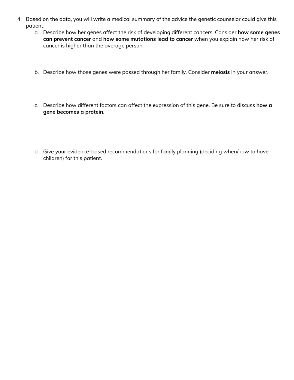 Describe how her genes affect the risk of developing different cancers. Consider how some genes can prevent cancer and how some mutations lead to cancer when you explain how her risk of cancer is higher than the average person.