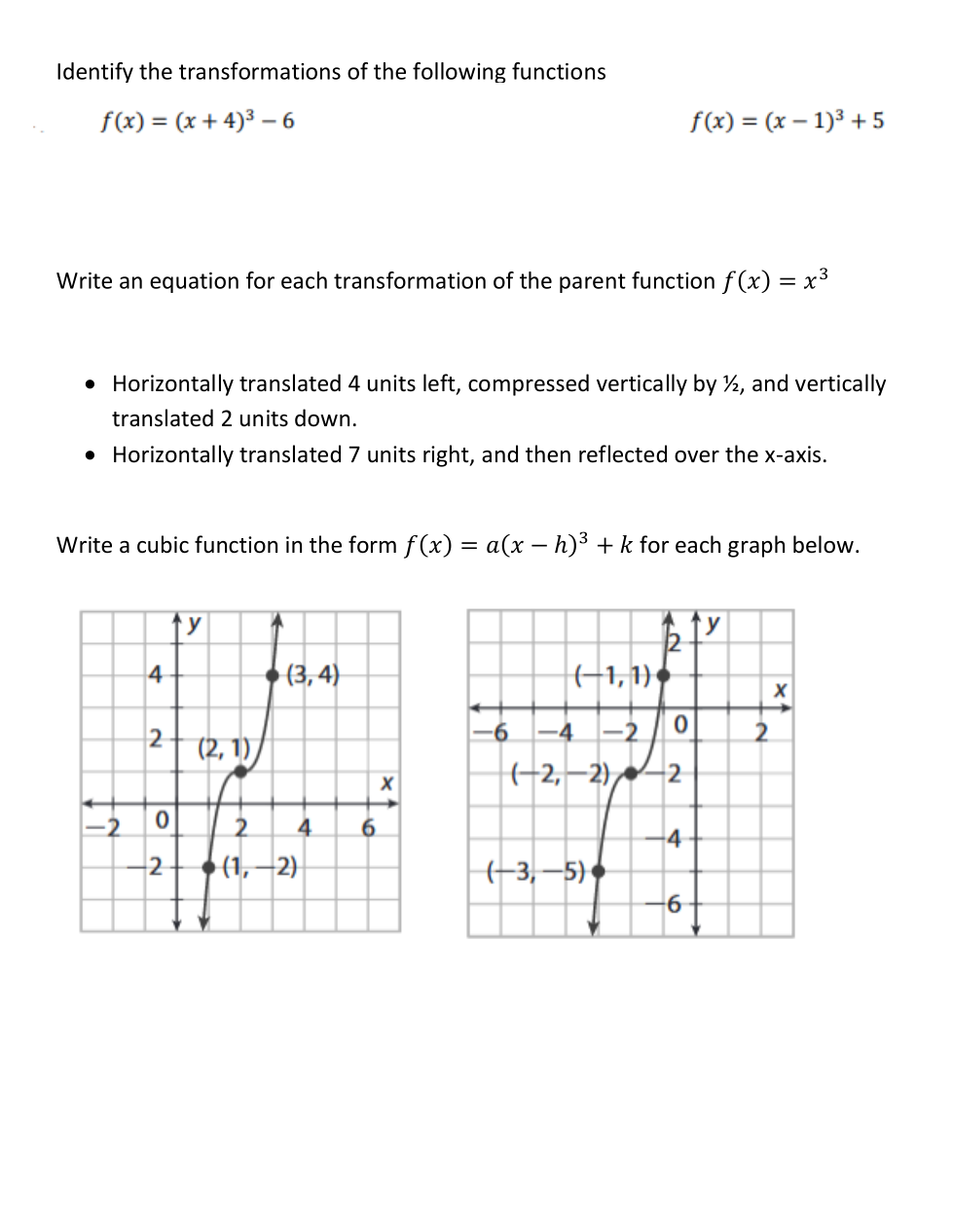 Assignment 3: Graphing Cubic & Cube Root Functions