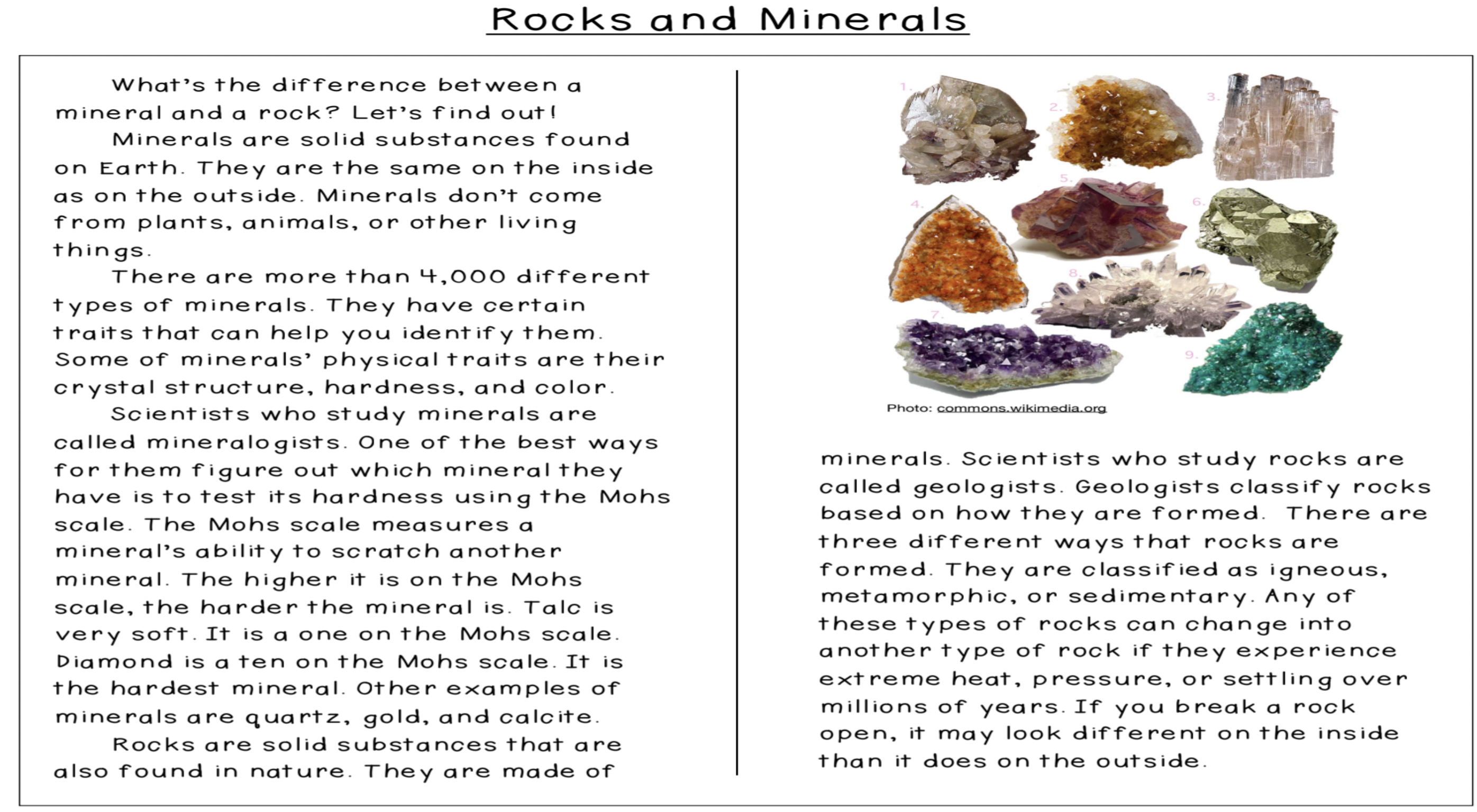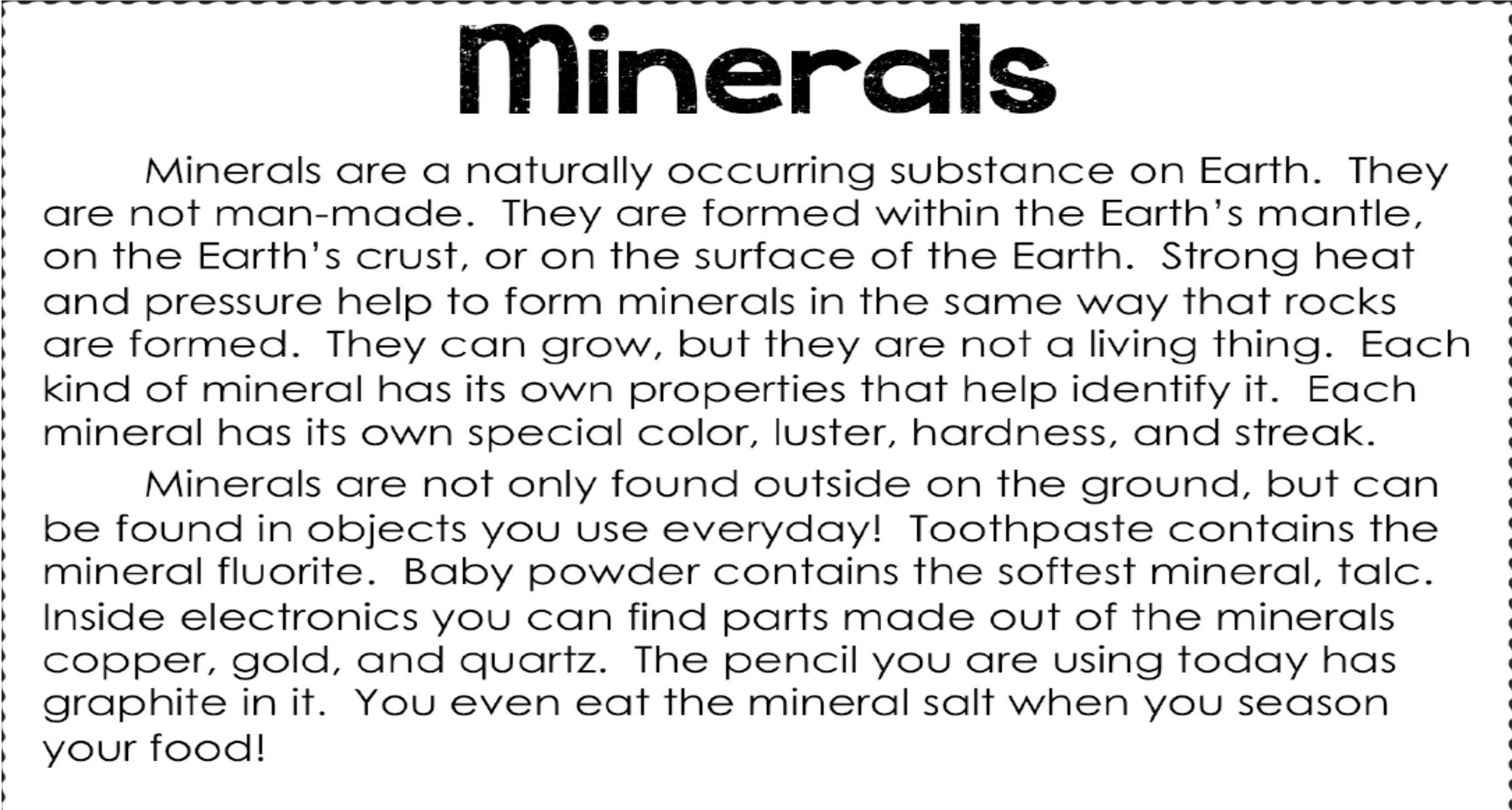 Rocks and Minerals Passage