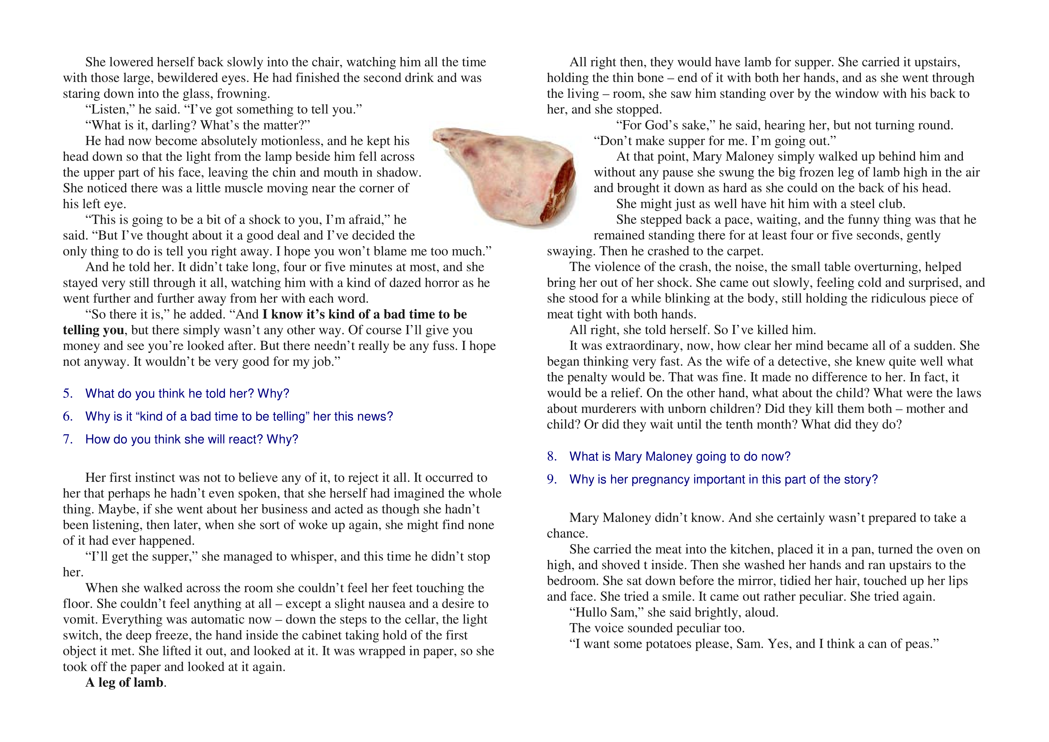 9. What are Mary Maloney ́s reasons for covering up the crime?