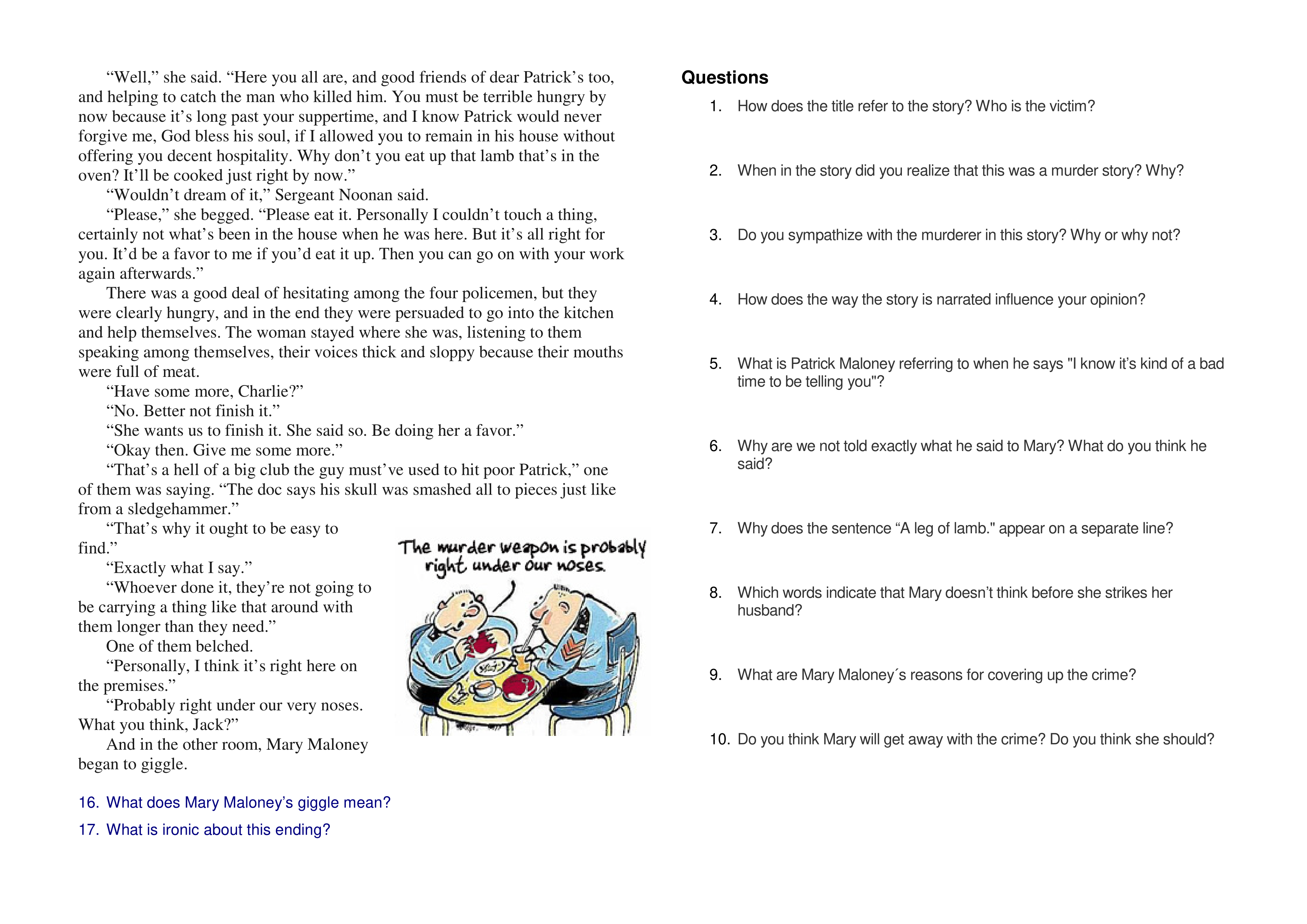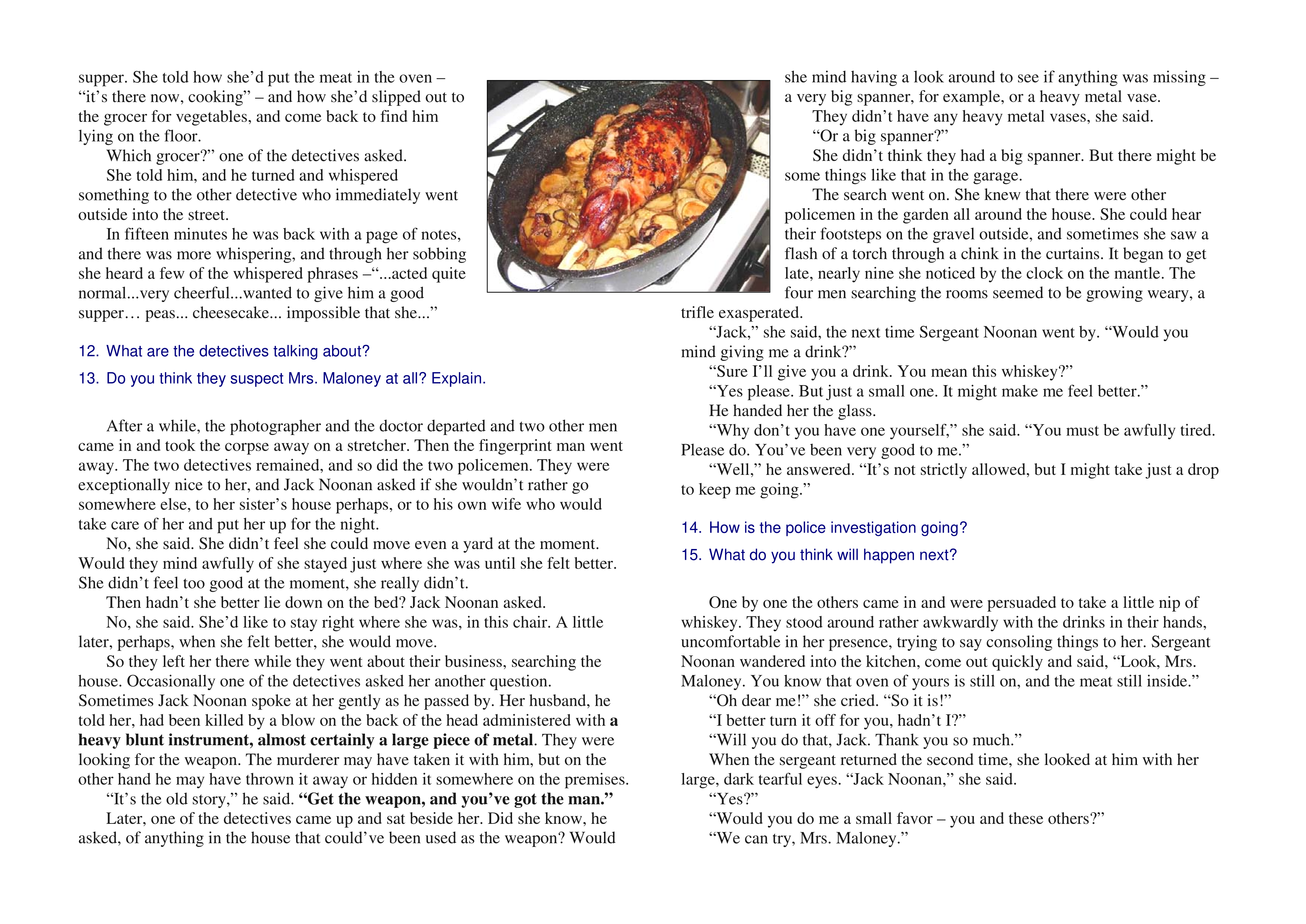 13. Do you think they suspect Mrs. Maloney at all? Explain.