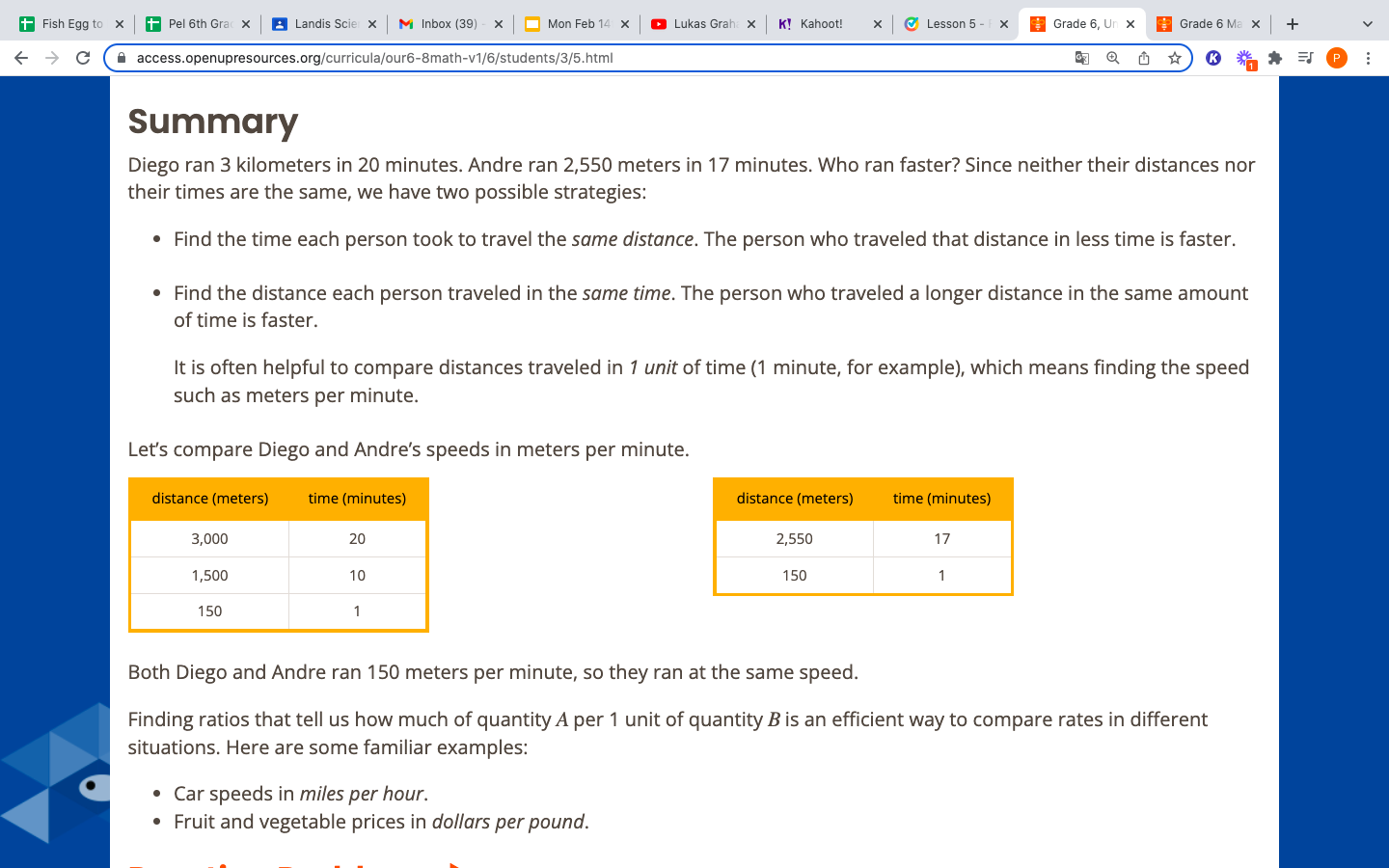 Some students did treadmill workouts, each one running at a constant speed. Answer the questions about their workouts. Explain or show your reasoning.- Tyler ran 4,200 meters in 30 minutes.