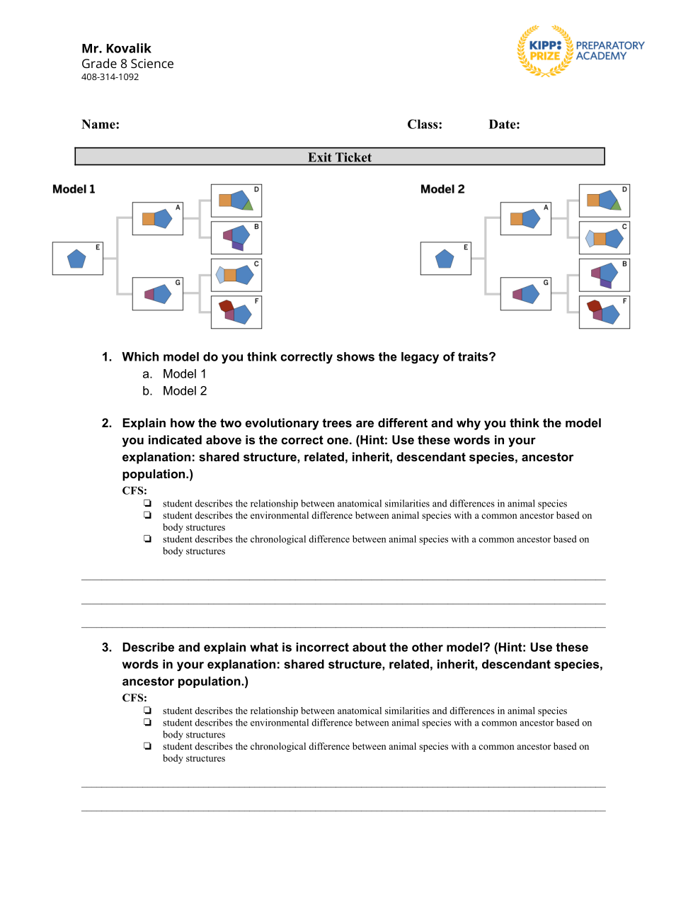 Evolutionary History 3.1 (3/8) Exit Ticket