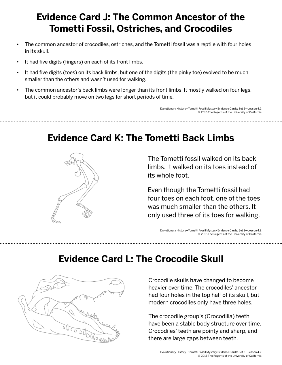 Which observations/ evidence cards provide stronger or more convincing evidence to paleontologists? Why?
