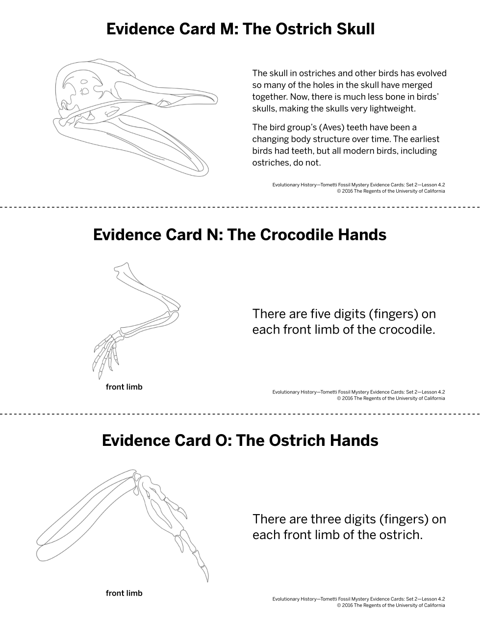 Which observations/ evidence cards provide stronger or more convincing evidence to paleontologists? Why?CFS:- student describes the relationship between anatomical similarities and differences in animal species
