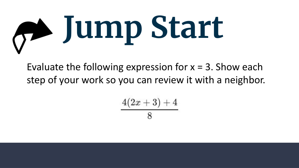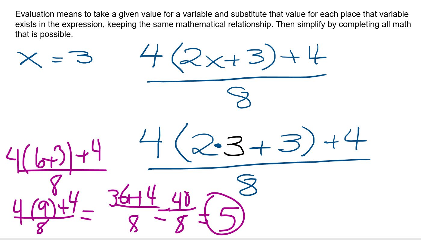 I can accurately evaluate and/or rewrite expressions in equivalent form(s) including relevant mathematical properties.