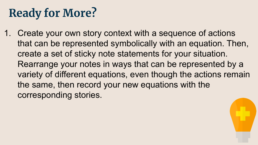 ¿Cómo me ayuda conectar las operaciones en una ecuación con una acción en una historia a desarrollar y justificar mi proceso de solución para resolver la ecuación?