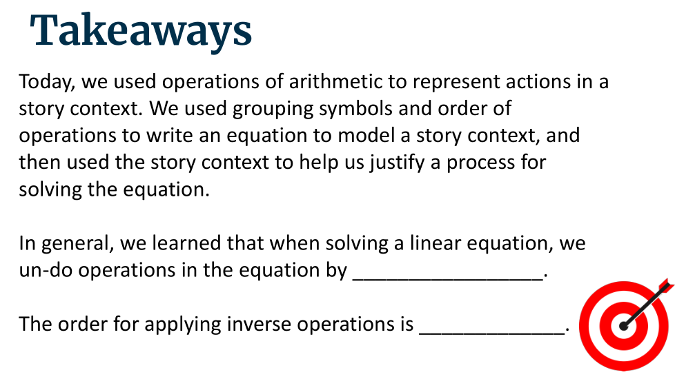 En general, aprendimos que al resolver una ecuación lineal, deshacemos las operaciones en la ecuación por