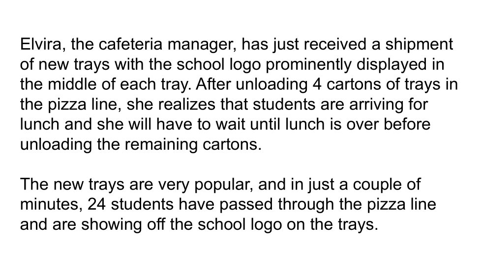 Use the whiteboard to help the manager answer her question. Make sure you explain how you got your solution.