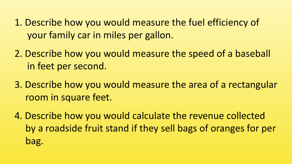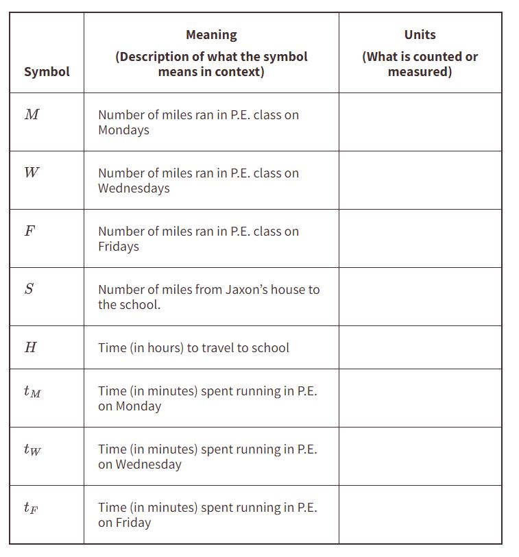 Determine las unidades que caben en la tercera columna de la tabla para cada una de las variables cuyas descripciones se dan.