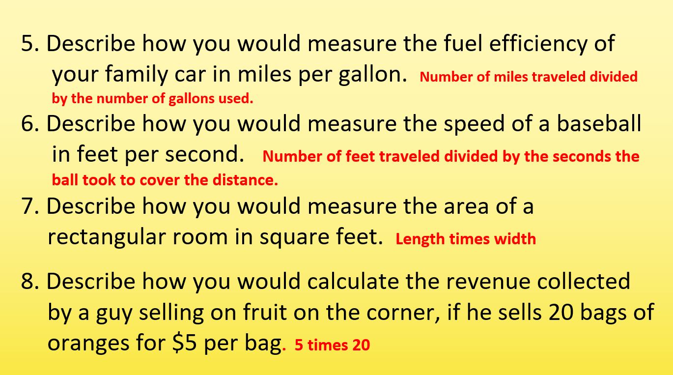 Describe how you would calculate the revenue collected by a roadside fruit stand if they sell 20 bags of oranges for $5 per bag.