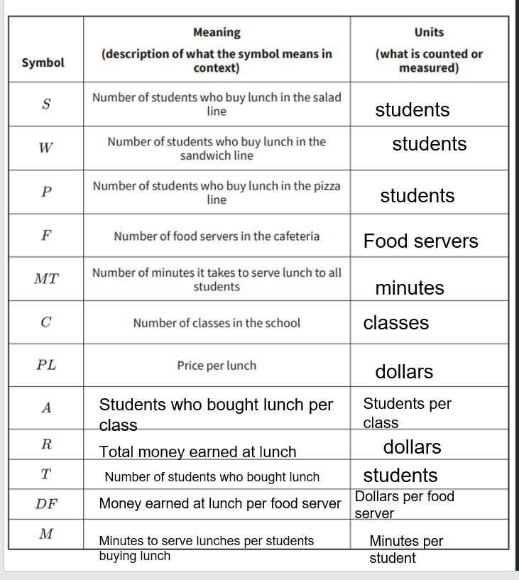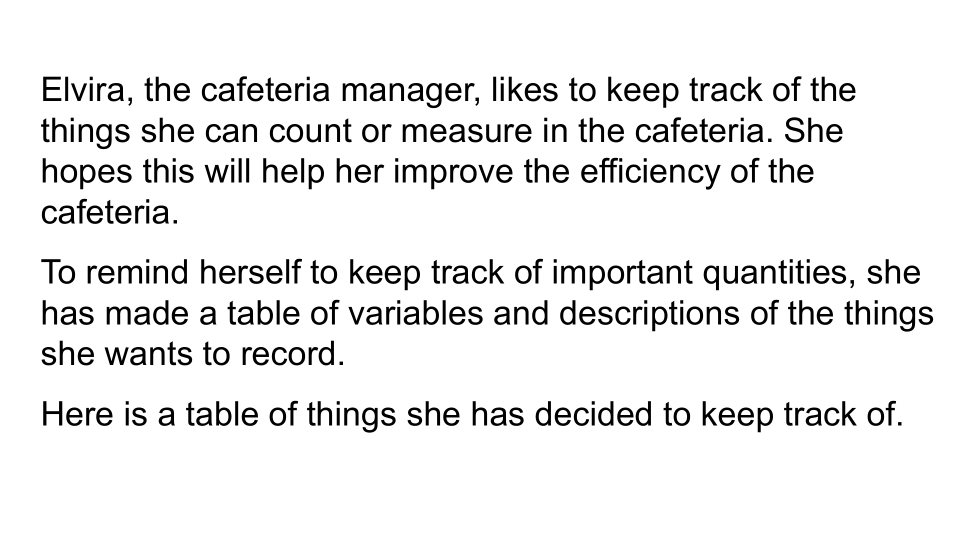 What does T represent in terms of the cafeteria? Record this information in the table.