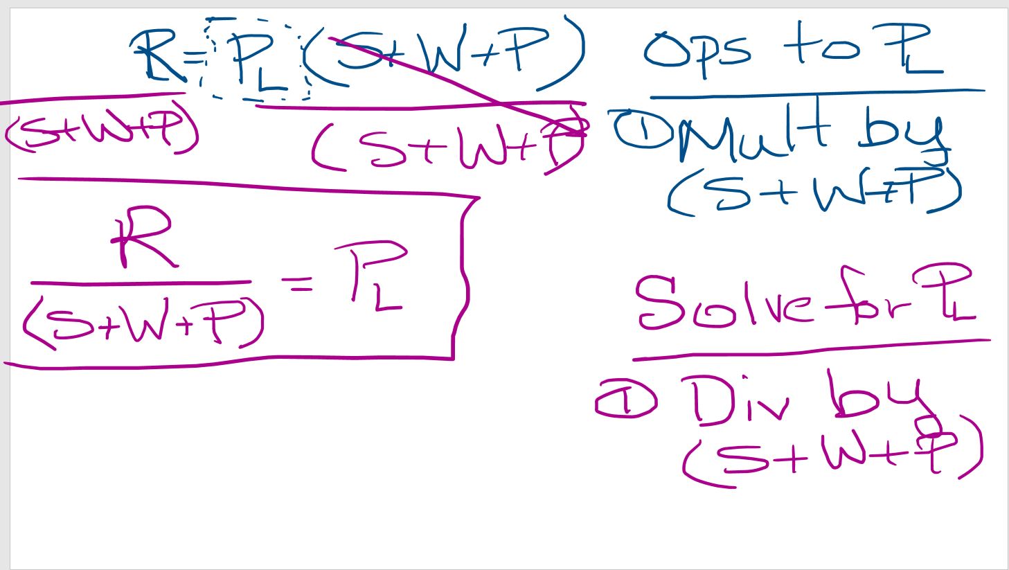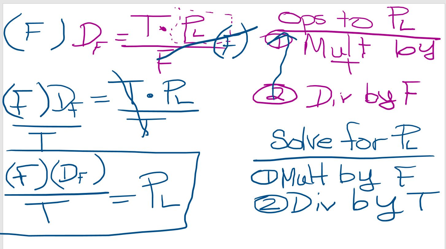Usando lo que sabes sobre la manipulación de ecuaciones, resuelve esta ecuación para PL.