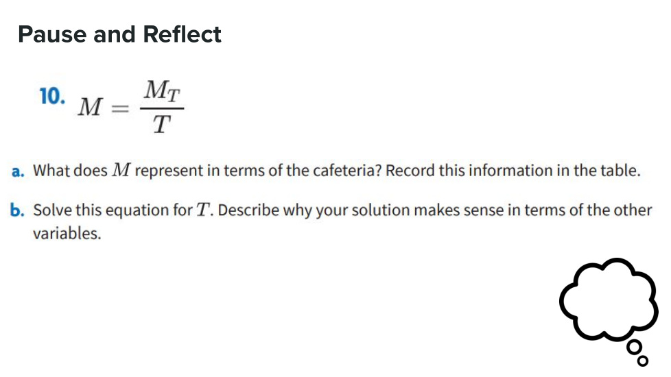 Tatua mlingano huu kwa T. Eleza kwa nini suluhu yako inaeleweka kulingana na vigeu vingine vingine.