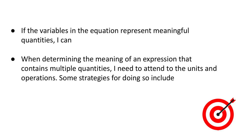 Al determinar el significado de una expresión que contiene múltiples cantidades, necesito prestar atención a las unidades y operaciones. Algunas estrategias para hacerlo incluyen
