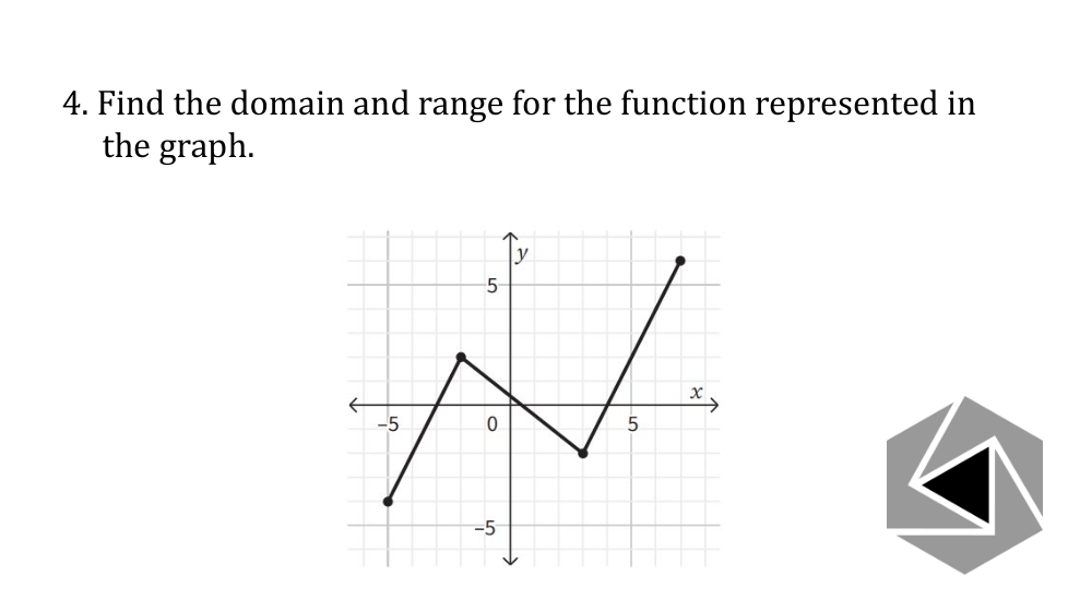 Find the domain and range for the function represented in the graph. Write your answer as