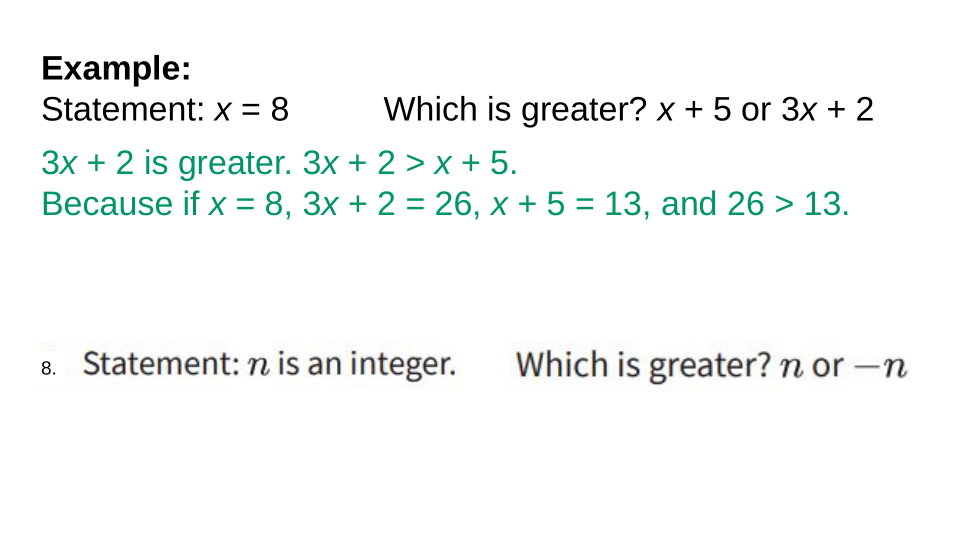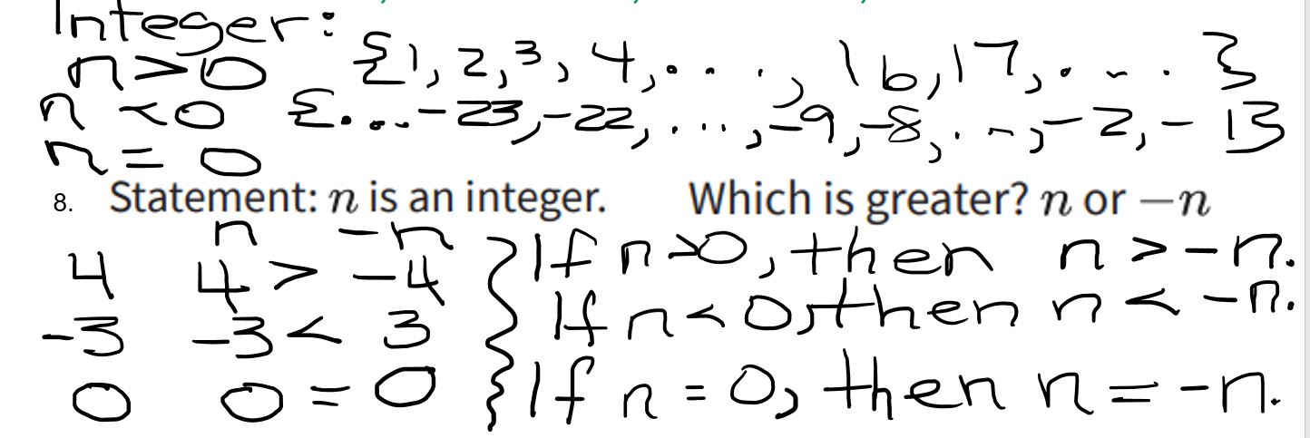 Declaración: n es un número entero.¿Cuál es mayor? n o -n