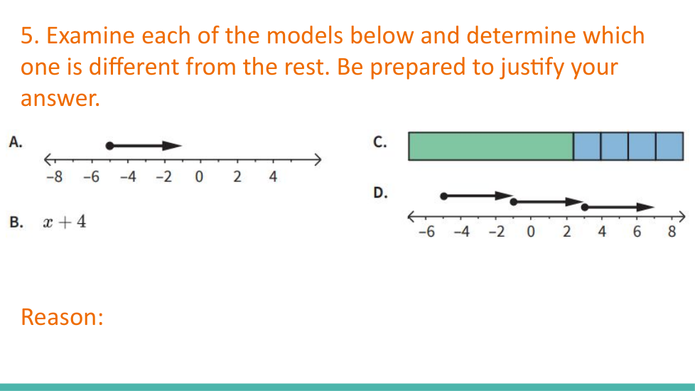 Chunguza kila moja ya mifano na uamue ni ipi tofauti na zingine. Kuwa tayari kuhalalisha jibu lako.