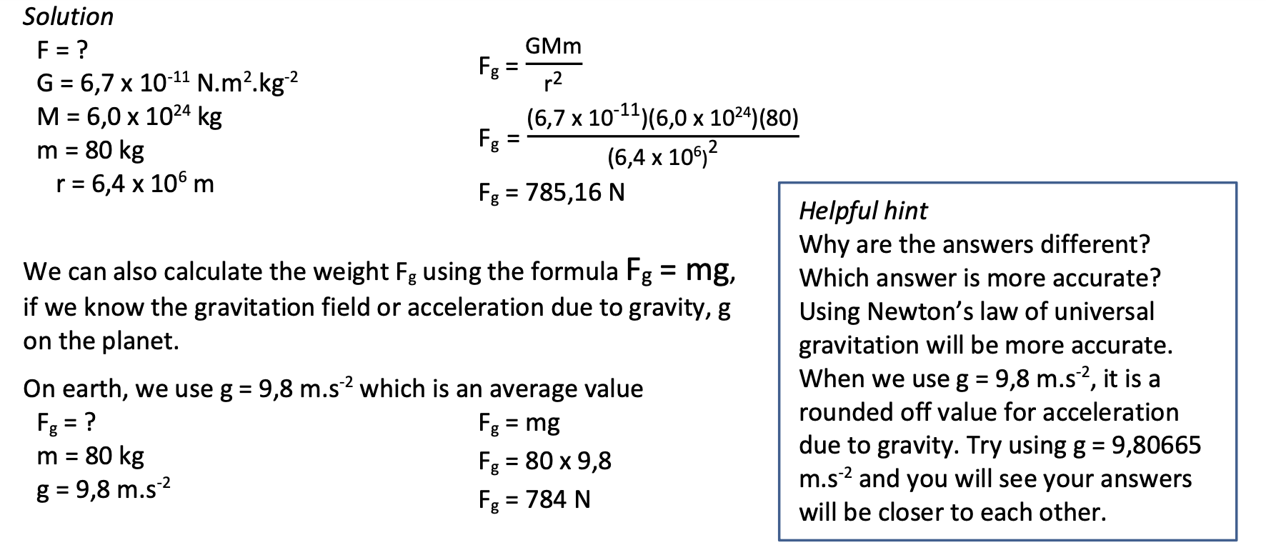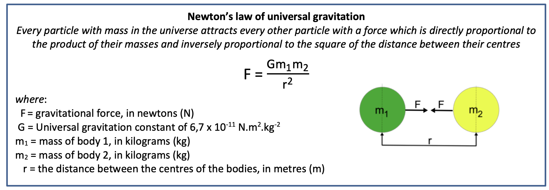 We are now going to calculate the gravitational force (F) between Earth and Venus when they are 61 000 000 km apart, using Newton's law of universal gravitation: