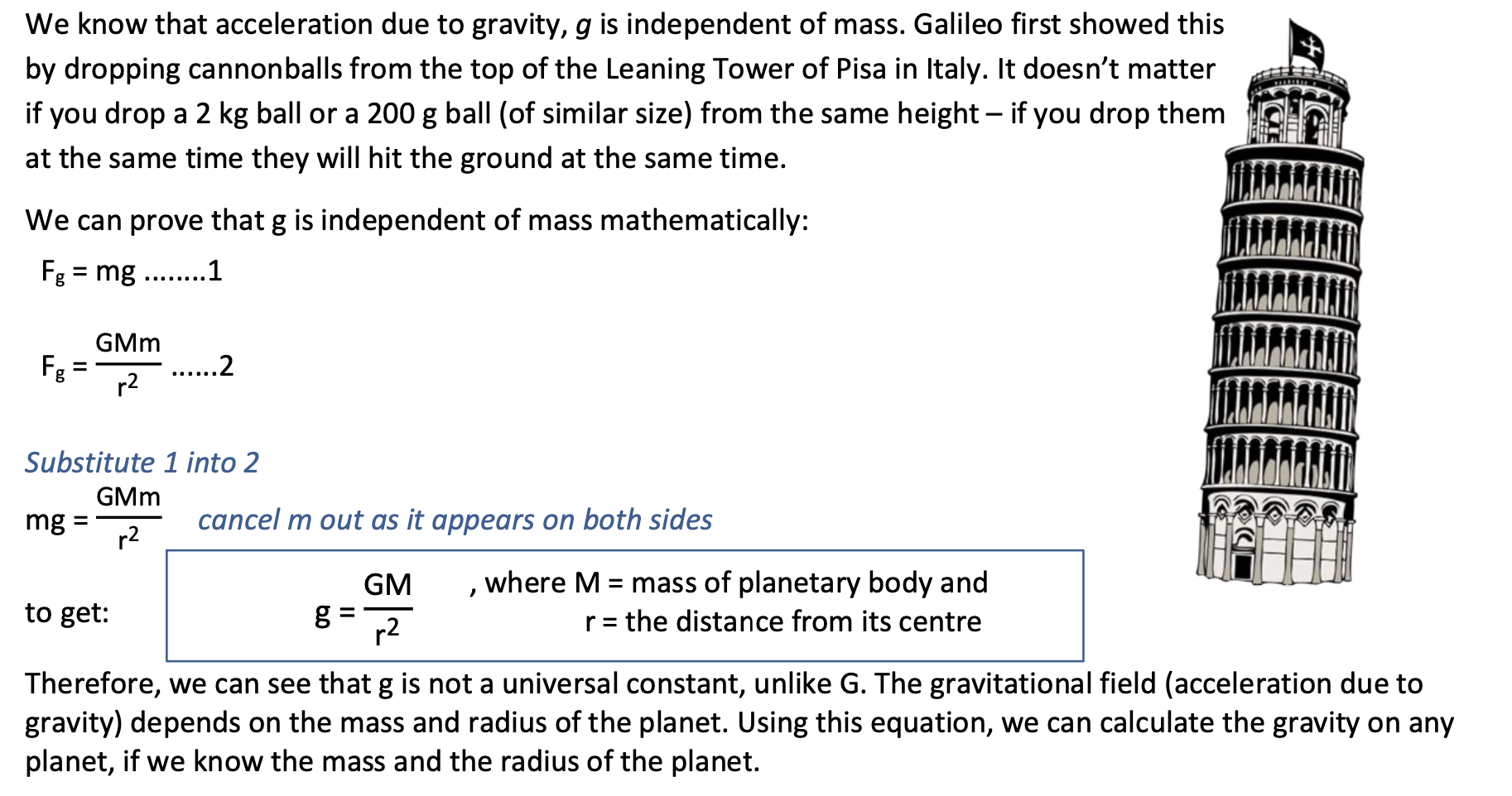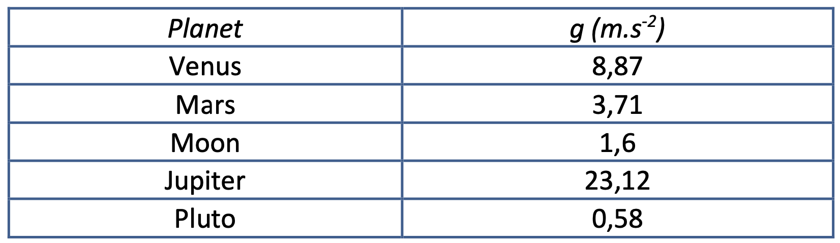 What is the acceleration due to gravity (g) on this planet? Use the appropriate unit.