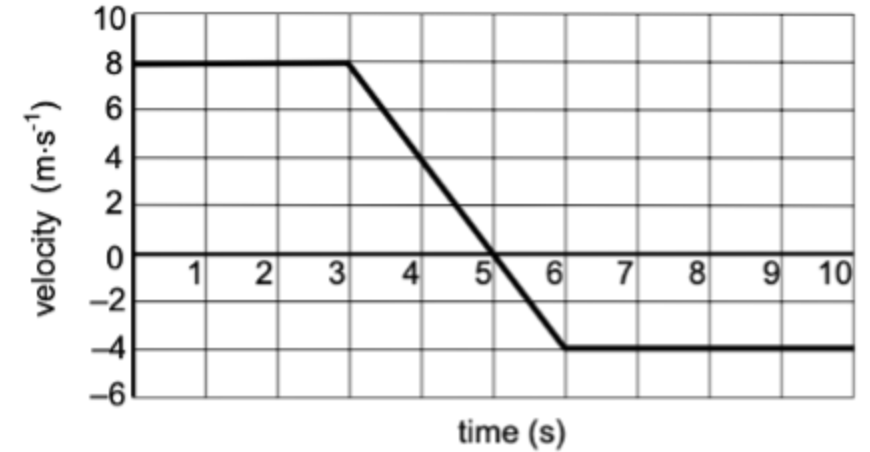 The velocity vs time graph for the motion of a car on a straight road is shown in the graph. Assume that the car starts at the origin 𝓍 = 0 at time t = 0.